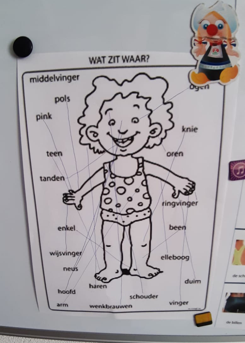 Ik probeer door middel van kleine activiteiten de kinderen iets bij te brengen op een leuke speelse wijze. Hier leren de kinderen iets over het lichaam.